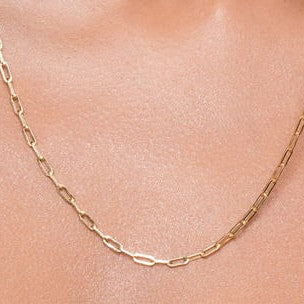 Hollow Paperclip Chain Necklace, 24" - 14K Yellow Gold