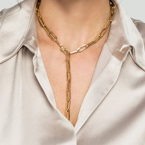 Hollow Paperclip "Y" Necklace, 20" - 14K Yellow Gold