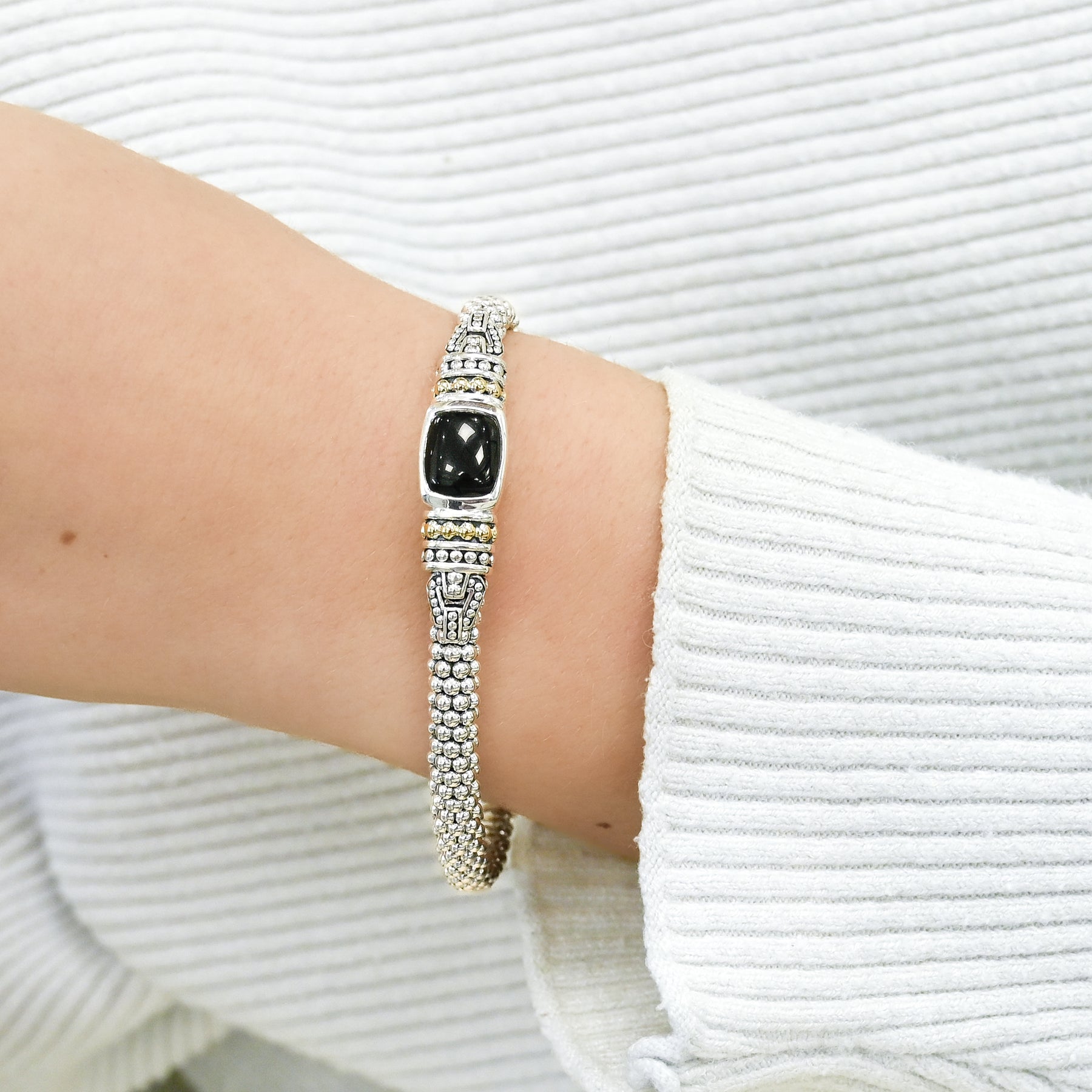 Lagos | Onyx Caviar Bracelet, 7" - 925 Sterling Silver + 18K Yellow Gold