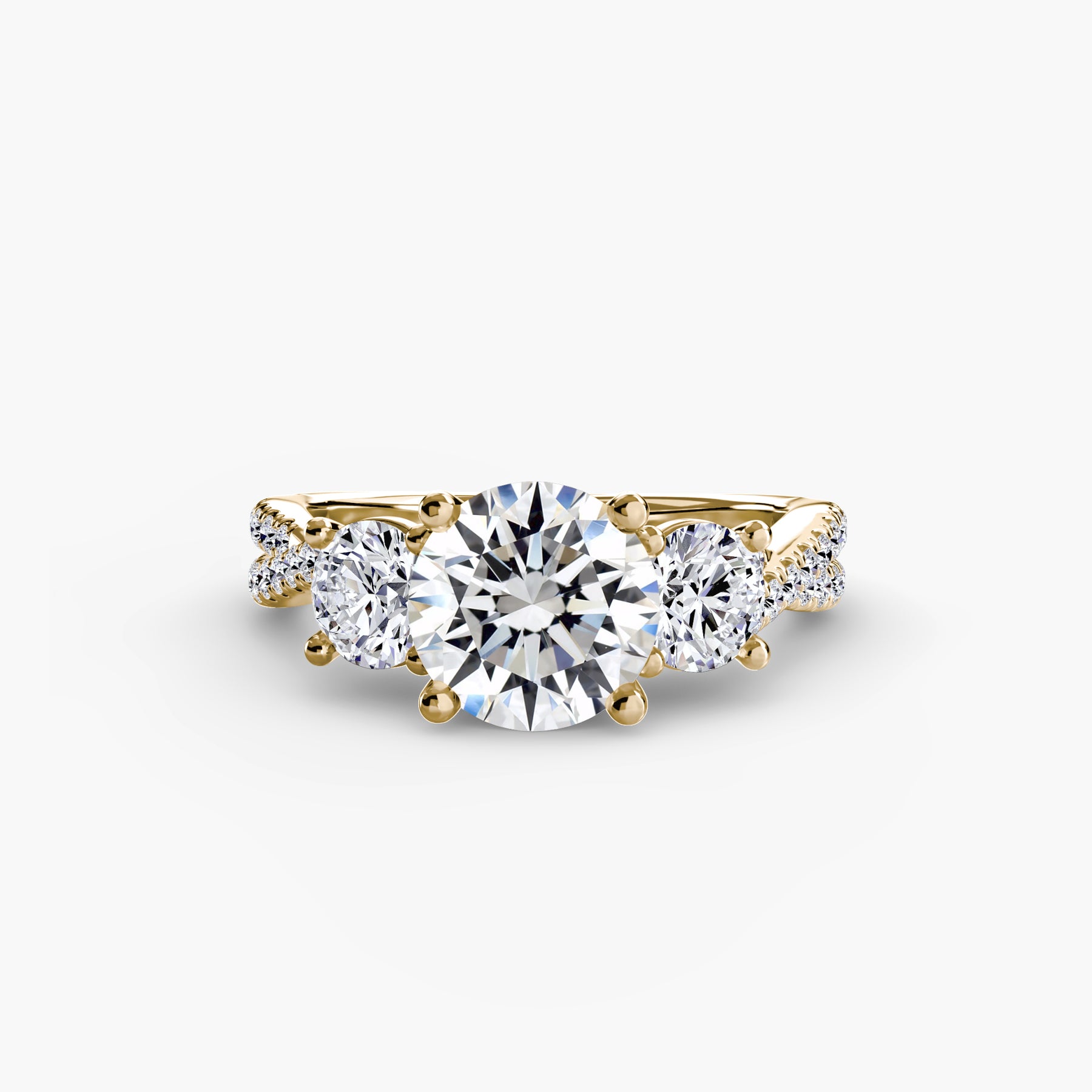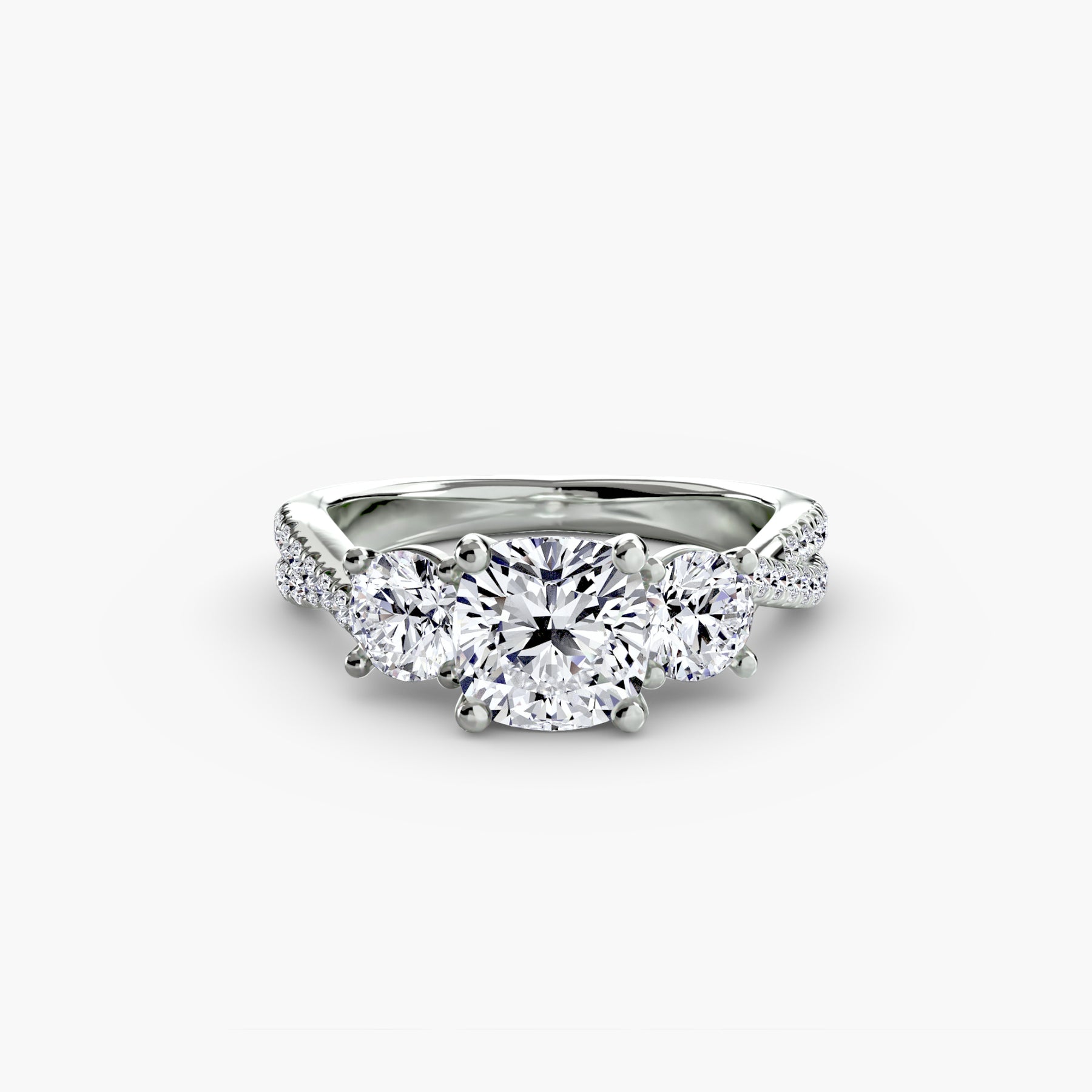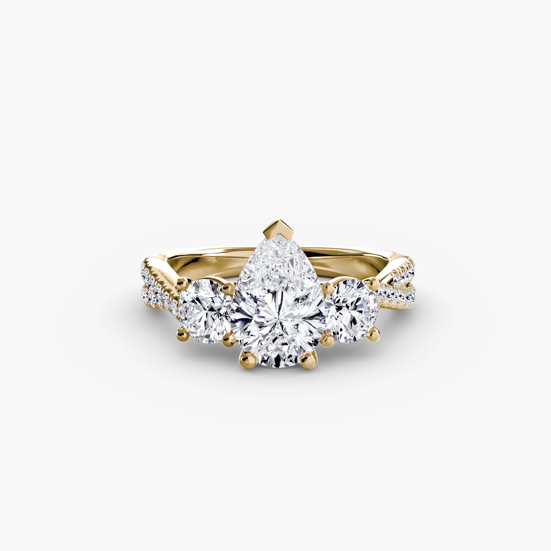 This elegant three-stone ring symbolizes your past, present, and future, elevated with a pavé band for extra sparkle and detail. A perfect union of meaning and brilliance.
